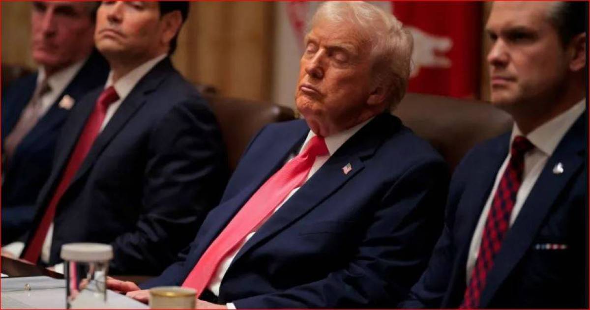 وأظهر مقطع فيديو، بينما كان وزير الخارجية ماركو روبيو يلقي كلمته في آخر الاجتماع، أن ترامب الجالس بجانبه كان متكئا على كرسيه وعيناه مغمضتان، ثم تحرك فجأة واعتدل ونظر إلى وزير الخارجية، وبعد لحظات بدت عينا ترامب مغمضتين مرة أخرى.