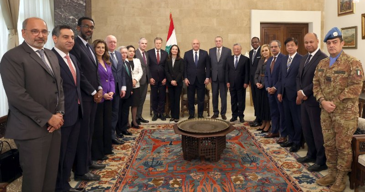وردا على أسئلة السفراء، أكد الرئيس عون ان "الجيش اللبناني انتشر في جنوب الليطاني في اليوم الأول لإعلان اتفاق وقف الاعمال العدائية في 27 تشرين الثاني 2024، وهو منذ ذلك اليوم يقوم بدوره كاملا وقدم شهداء في اثناء أداء مهماته في مصادرة السلاح وتفتيش الانفاق وسحب الذخائر ومنع المظاهر المسلحة. ولم يتمكن الجيش من استكمال انتشاره في جنوب الليطاني نتيجة استمرار الاحتلال الإسرائيلي لاراض لبنانية حدودية. الا ان ذلك لم يمنعه من مواصلة تنفيذ مهماته وتطبيق القرار 1701 في مناطق شاسعة جغرافيا ومليئة بالوديان التي من الصعب الوصول اليها دائما، ما يتطلب وقتا وجهدا كبيرين. ونأمل ان يصبح عديد الجيش نحو 10 الاف عسكري في الجنوب قبل نهاية السنة الحالية".