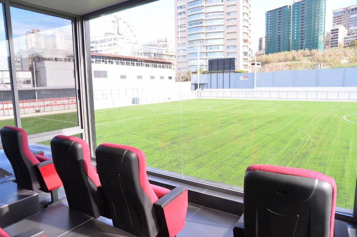 غرفة خاصة بالفريق الاول + غرفة لكل فرق النادي المتبقية وغرفة للفريق الضيف وجيم + مركز طبي + قاعة محاضرات + مكاتب للأجهزة الفنية + مكتب لادارة النادي + مكتب اعلامي + مكتب لاكادمية النادي + كافيتيريا + منصة ViP هي الاولى في ملاعب الاندية في لبنان.